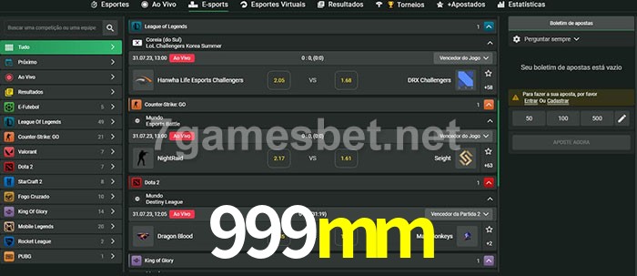 O 999mm oferece uma grande seleção de opções de apostas em e-sports com probabilidades competitivas